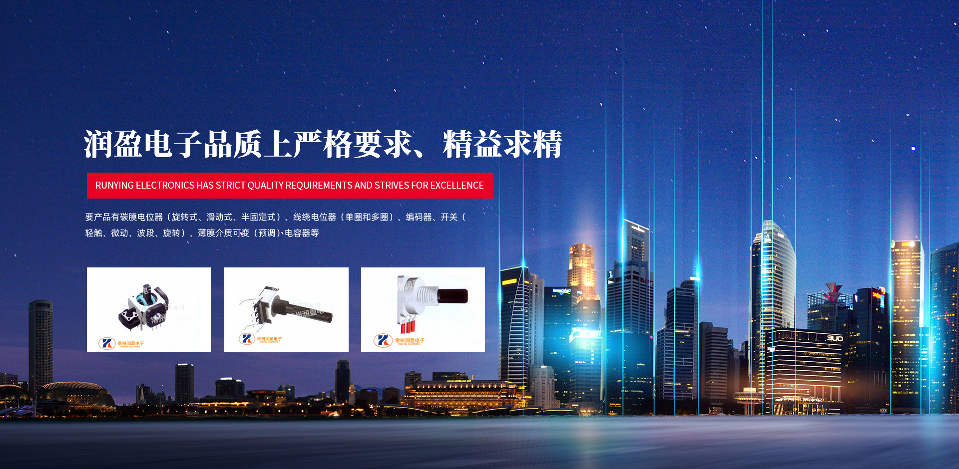 常州潤盈電子有限公司成立以來,從事編碼器、電位器、電子開關(guān)的研發(fā)和制造。公司總部設(shè)立在江蘇省常州市禮嘉鎮(zhèn)。常州潤盈電子有限公司擁有完整、科學(xué)的質(zhì)量管理體系,采用先進(jìn)的加工設(shè)備、精密的檢測儀器、高能的組裝生產(chǎn)線,在品質(zhì)上嚴(yán)格要求、精益求精,在團(tuán)隊(duì)管理上以人為本、精細(xì)管理,以此來確保本公司為客戶提供的優(yōu)良產(chǎn)品和服務(wù)。隨著公司業(yè)務(wù)的國際化,公司產(chǎn)品全部達(dá)到“ROHS”指令要求。公司現(xiàn)在主要產(chǎn)品有碳膜電位器(旋轉(zhuǎn)式、滑動式、半固定式)、線繞電位器(單圈和多圈)、編碼器、開關(guān)(輕觸、微動、波段、旋轉(zhuǎn))、薄膜介質(zhì)可變(預(yù)調(diào))電容器等。我們始終堅(jiān)持“效率成就品牌,誠心鑄就未來”的宗旨。不斷創(chuàng)新是企業(yè)得以生存的動力,潤盈電子期待與您的合作!